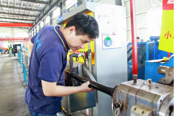 與其他組裝式的產(chǎn)品不同,后期檢查出現(xiàn)質(zhì)量問題,可以拆開重裝或更換零件,電纜的生產(chǎn)制造任何一個(gè)部件或工藝工序沒有達(dá)標(biāo),后期是無法挽回和彌補(bǔ)的。因此,電纜生產(chǎn)線上的每一個(gè)操作者都是關(guān)鍵人物。作為機(jī)組組長的劉學(xué)文,深知自己肩上的重任,一旦進(jìn)入車間,他便絲毫不敢懈怠,總是在生產(chǎn)線之間來回走動(dòng),反復(fù)查看機(jī)器設(shè)備的運(yùn)轉(zhuǎn)情況、第一時(shí)間查看電纜成品質(zhì)量,快速發(fā)現(xiàn)問題,解決問題,避免不良品流入下一道工序,不僅保障了電纜質(zhì)量,而且有效提高了電纜的生產(chǎn)效率。